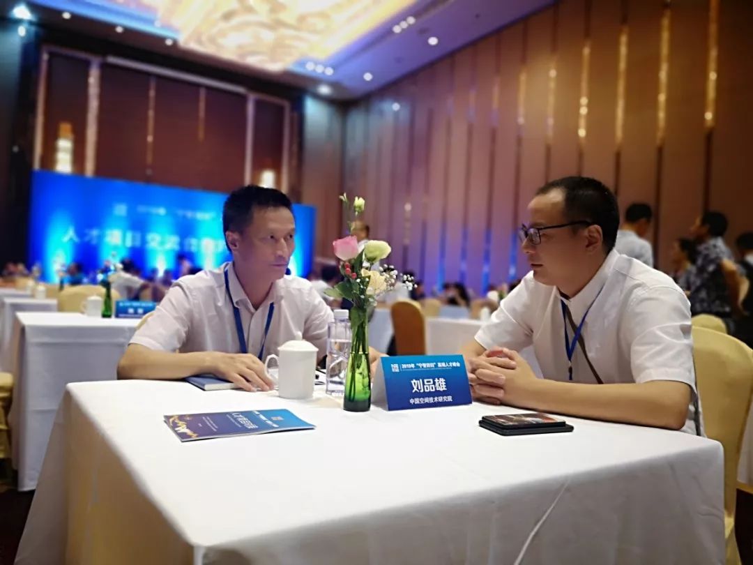 当晚,,,,,在人才项目交流合作对接洽谈会上,,,,,我司高管与十位高端人才进行项目对接交流。。。。。。。。中国空间技术研究院、钱学森空间技术实验室副总研究师、高级研究员,,,,,国家高分重大专项专家组成员,,,,,空间基础设施规划总执笔人刘品雄与我司总经理陈一峰、副总经理林隆麟分别进行了深入的交谈。。。。。。。。